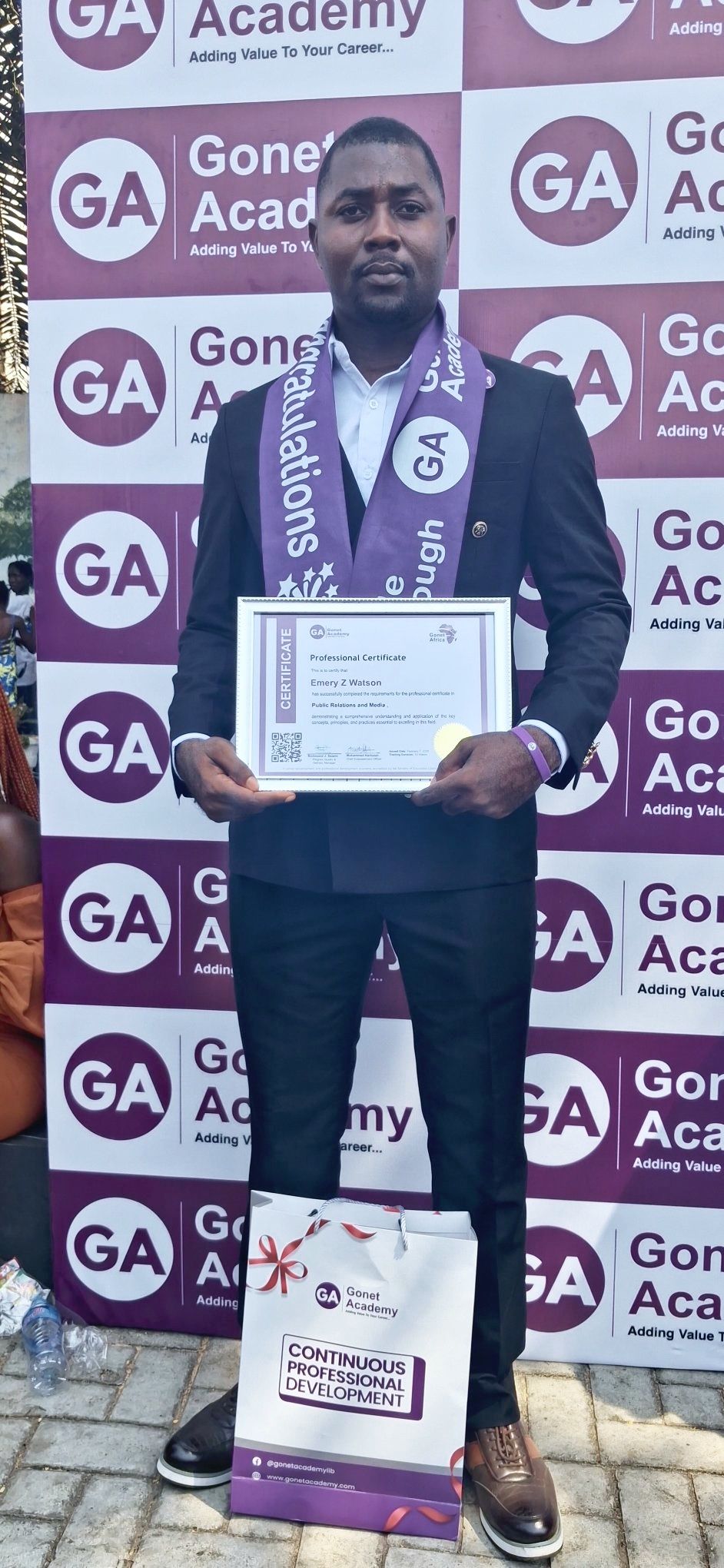 We proudly congratulate Emery Zarway Watson, a strong supporter of the management of DKNN, on the successful completion of his studies in Public Relations and Media at Gonet Academy ✨
