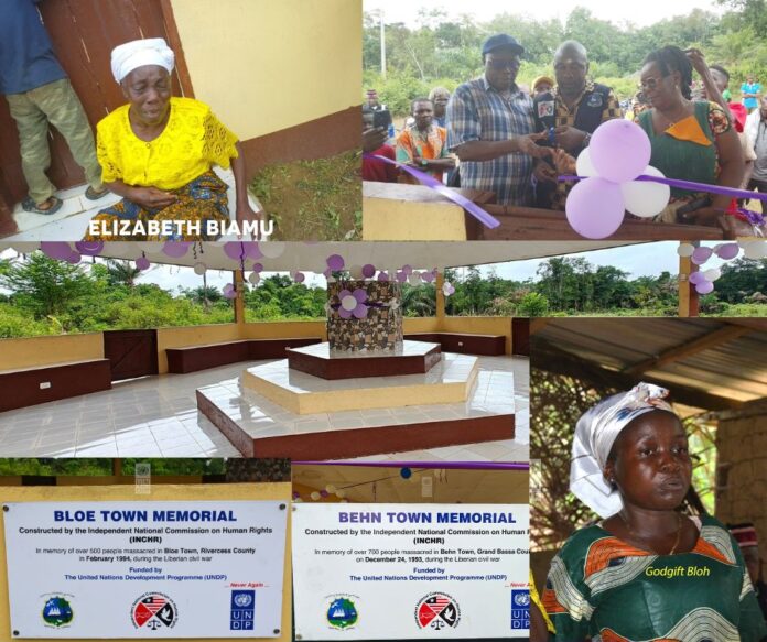In Behn Town, Grand Bassa County, and Bloe Town in Rivercess County, community members gathered around the newly constructed memorials.